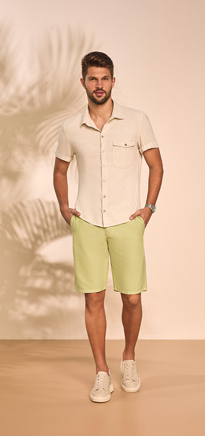 4509 - CAMISA LINHO SLIM 4496 - BERMUDA LINHO COMFORT
