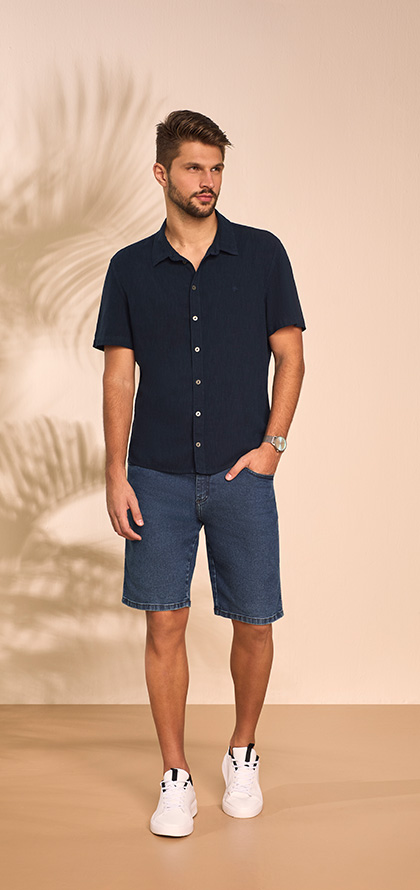 4508 - CAMISA LINHO REGULAR 4502 - BERMUDA JEANS SLIM