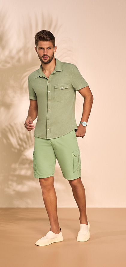 4509 - CAMISA LINHO SLIM 4501 - BERMUDA SARJA CARGO
